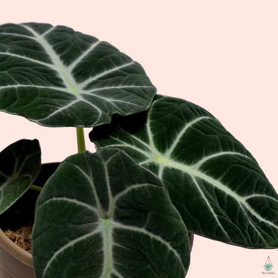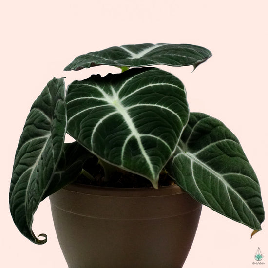 Alocasia Reginula, known as Alocasia Black Velvet is a species that is characterized my its stunning dark foliage. The leaves are stiff but are velvety to the touch and feature beautiful white veining.