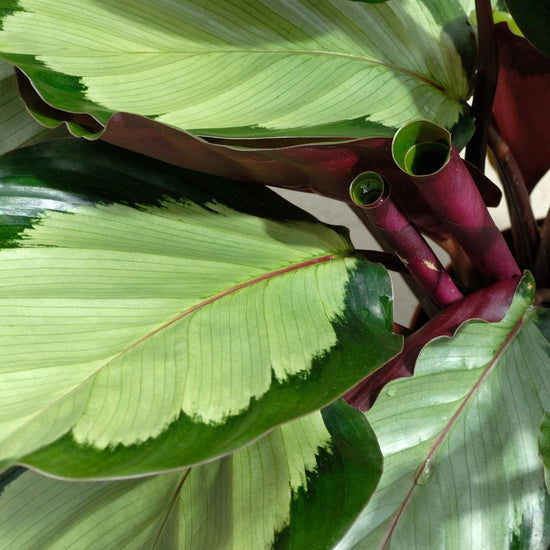 The plants in the Calathea family are also known as "Prayer Plants" due to the way the leaves fold upwards at night.