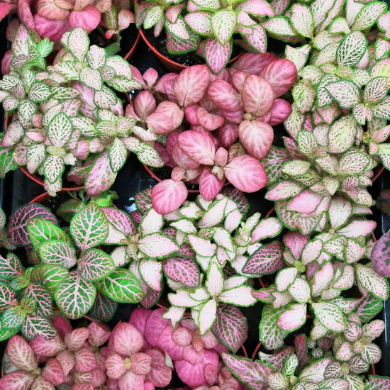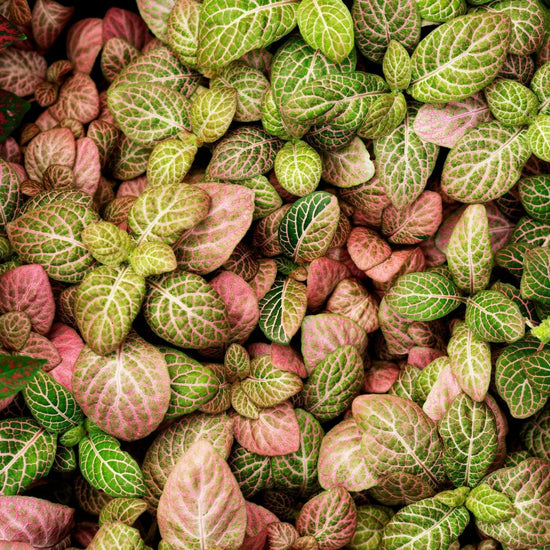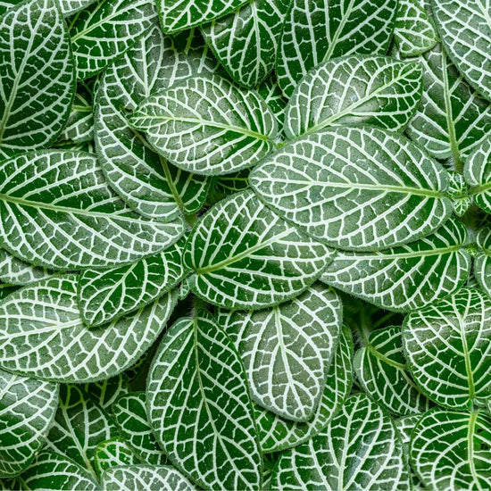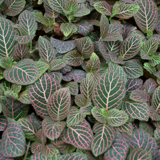 Fittonia, also known as "Nerve" or "Mosaic" Plant is a stunning low-growing tropical perennial with striking foliage. This plant is low-growing and loves humidity which makes it a great candidate for terrarium builds!