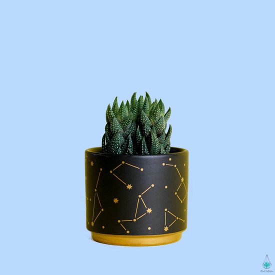 Give your favourite plant a celestial home in our cute Constellations Pot. Featuring a moody matte black finish with bold gold-coloured detail.