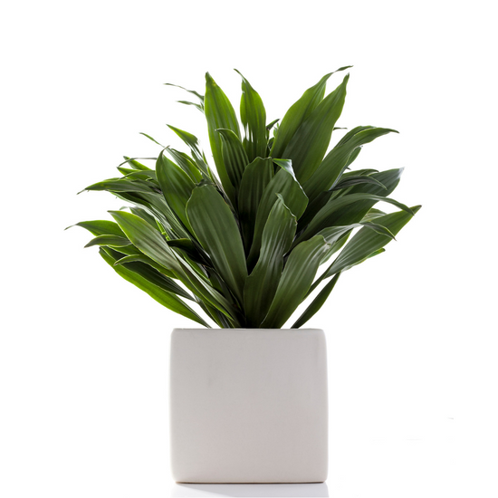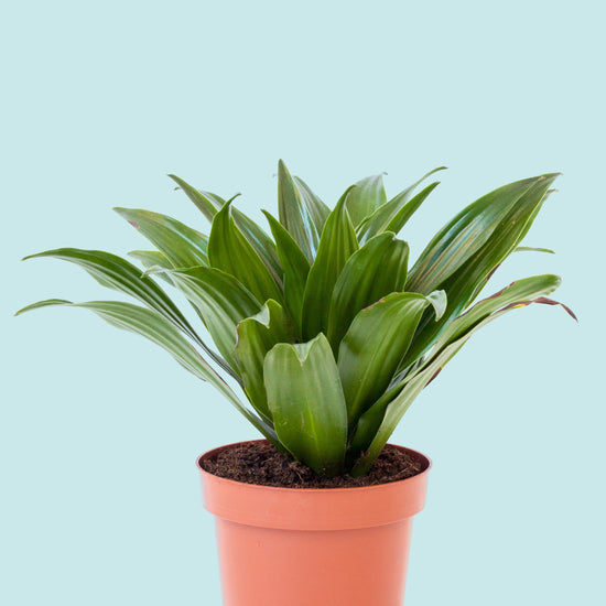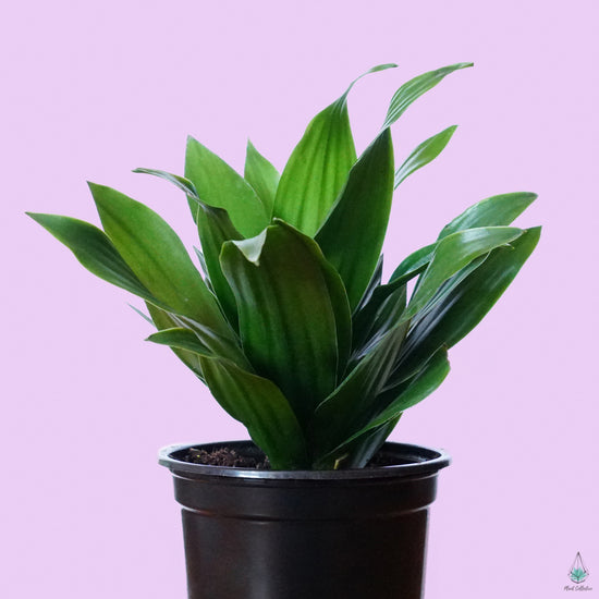 Dracaena deremensis "Janet Craig" is one of the hardiest plants around! It is a compact miniature that causes its' leaves to grow tightly together. As it matures, it will drop lower leaves and form a woody trunk.