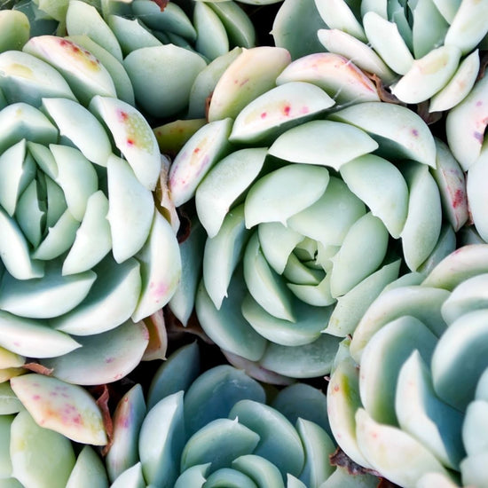 Also known as "The Mexican Snowball" and "The Mexican Rose," the echeveria Elegans is a pale green, tender leaved succulent. It forms tight, beautiful rosettes and often develops little babies!