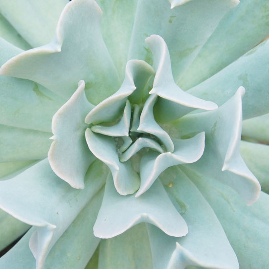 The Echeveria Runyonii “Topsy Turvy” is a soft, tender succulent that grows quickly. It is characterized by its icy-blue leaves that curve upwards and an inversely-keeled lower surface that ends with the leaves pointing towards the centre of the rosette.
