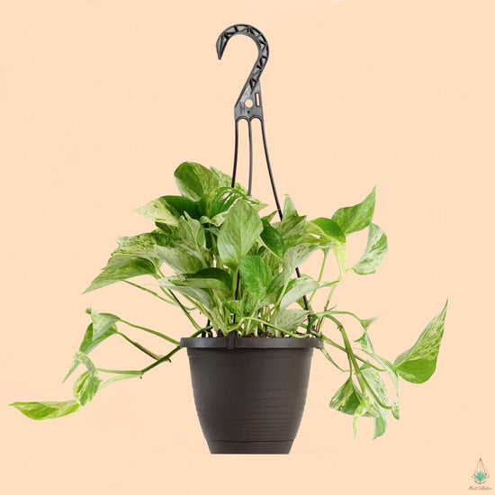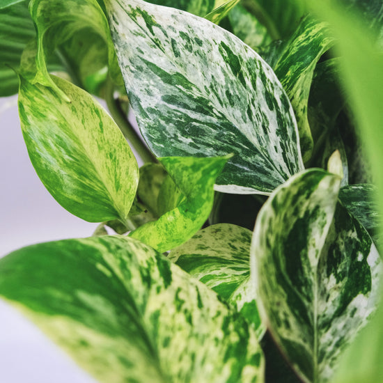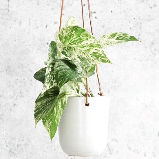 Pothos are one of the most well-known house plants, popular due to their easy-going nature and ability to thrive in just about every environment. This species of Pothos (Epipremnum aureum 'Marble Queen') is a hybrid species and is highly coveted for its lovely speckled white variegation. A vining plant, they lookk fantastic in a hanging basket or staked up in a pot. This particular species grows slower than the rest in its family.