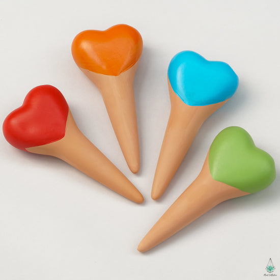 Our heart-shaped watering spikes are perfect for those with a busy schedule or those who travel often. These self-watering terracotta spikes will slowly release water as moisture is displaced in your plants' soil over time. Great for moisture-loving house plants such as ferns, calatheas, fittonias, pothos, etc.