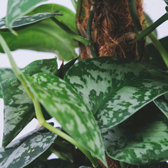 Pothos are one of the most well-known house plants, popular due to their easy-going nature and ability to thrive in just about every environment. This species of Pothos (Scindapsus Pictus "Exotica") is coveted for its attractive silvery leaves. A vining plant, these plants look fantastic trailing down a hanging basket or staked up in a pot.