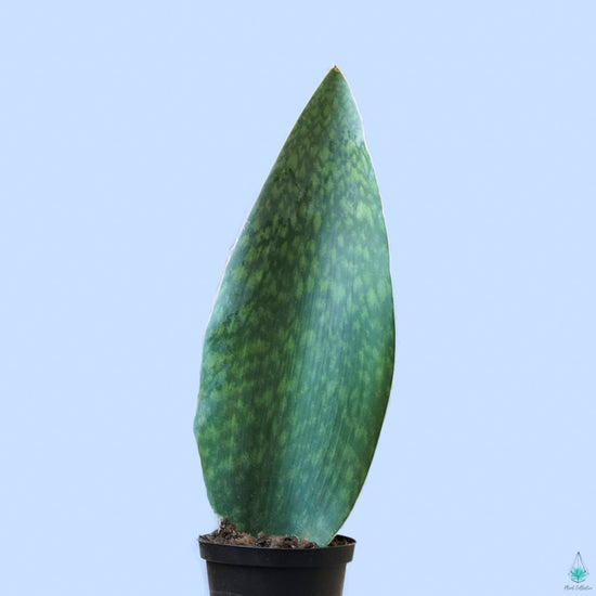 Sansevieria Masoniana, (recently re-classified as Dracaena Masoniana) and aptly nicknamed the 'Whale Fin' due to its wide paddle-like leaves. Highly coveted among plant collectors for its unique shape and beautifully mottled foliage.